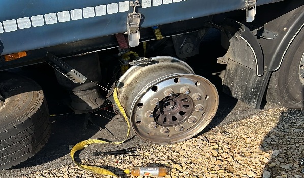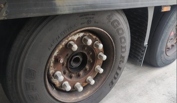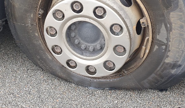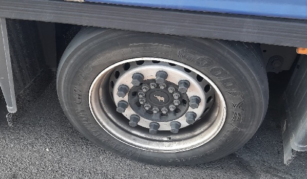 26605 Aurich, Auflieger Reifenwechsel mit der Größe 445/45 R19.5 auf dem Parkplatz