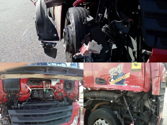 Mercedes Actros близо до Клопенбург.Мерцедес се блъснал на А1 в лек автомобил.