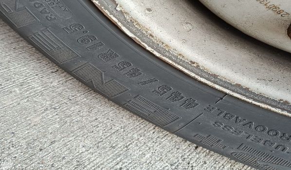 95326 Kulmbach, Auflieger Reifenwechsel mit der Größe 245/70R 17,5 am Straßenrand