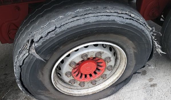 24568 Kaltenkirchen, Auflieger Reifenwechsel auf dem Parkplatz