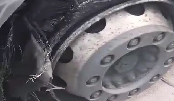 40699 Erkrath, Lkw Reifenwechsel auf dem Parkplatz