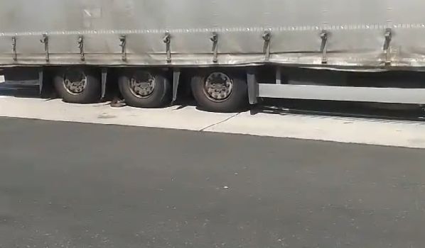 42555 Langenberg, Auflieger Reifenwechsel auf dem Standstreifen