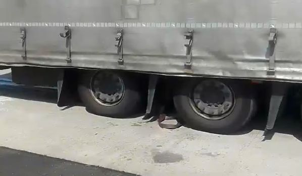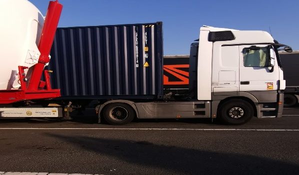 74182 Obersulm, Auflieger Reifenwechsel auf einem Parkplatz
