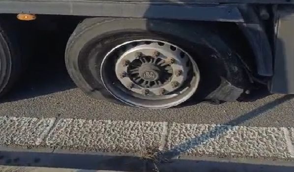 40822 Mettmann, Auflieger Reifenwechsel auf dem Parkplatz