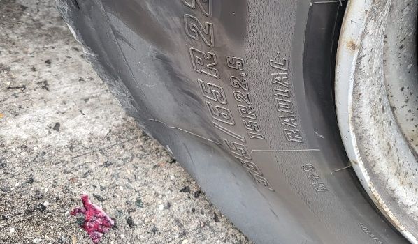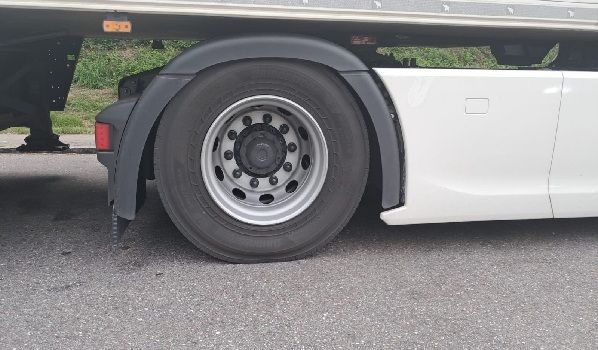 50226 Frechen, Auflieger Reifenwechsel mit der Größe 385/65 R22.5 auf der Straße