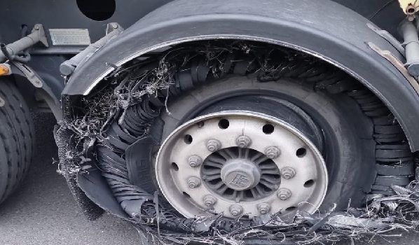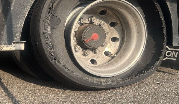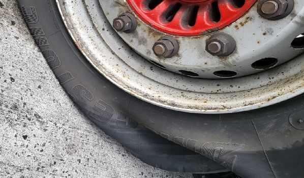 48268 Greven, Auflieger Reifenwechsel auf dem Parkplatz