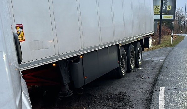 07407 Rudolstadt, Auflieger Reifenwechsel auf dem Parkplatz