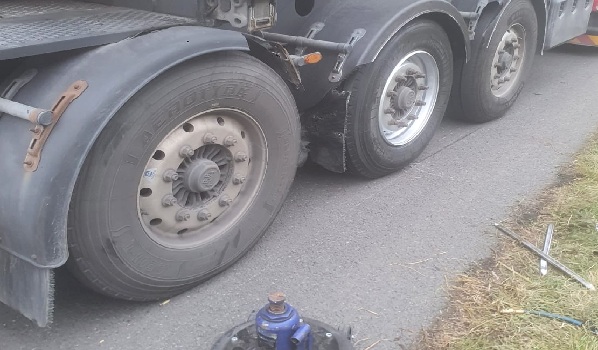06721 Osterfeld, Auflieger Reifendienst auf dem Standstreifen