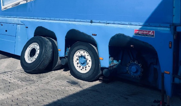 56112 Lahnstein, Auflieger Reifenwechsel auf dem Parkplatz