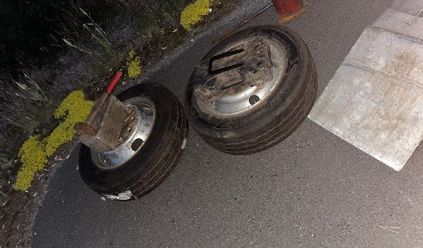 41569 Rommerskirchen, Auflieger Felgenwechsel und Reifentausch auf dem Parkplatz