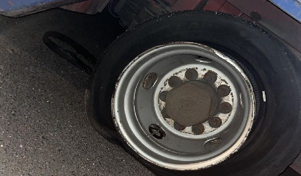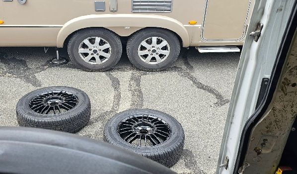 51643 Gummersbach, Wohnmobil Reifenwechsel auf dem Parkplatz