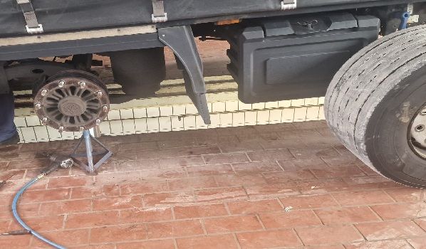42579 Heiligenhaus, Auflieger Felgenwechsel auf dem Parkplatz wegen Rostschäden