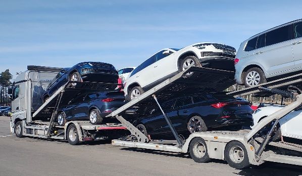 40667 Meerbusch, Auflieger Reifendienst für einen Autotransporter auf dem Parkplatz