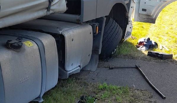 26316 Varel, Lkw Reifenwechsel neben der Fahrbahn nach Platzer