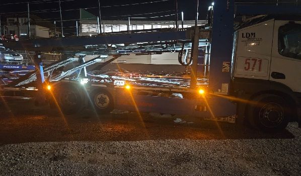 58452 Witten, Autotransporter Reifenwechsel auf einem Parkplatz