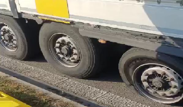 97262 Hausen, Auflieger Reifenwechsel neben der Fahrbahn