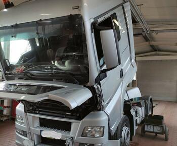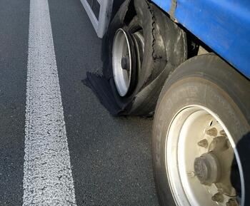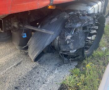 Der Renault war auf der A4 unterwegs, als ihm die Zwillingsreifen auf der rechten Seite des Fahrzeugs geplatzt sind. Durch die enorme Kraft der Explosion ist auch die Halterung der Beleuchtung zerstört worden.