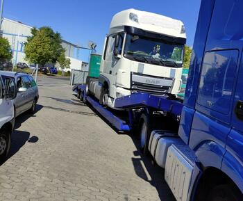 Der DAF hat es nicht mehr aus eigener Kraft geschafft zu uns zu kommen, um bei ihm die Kupplung zu wechseln. Aber mit unserem Tieflader war es gar kein Problem ihn abzuholen.