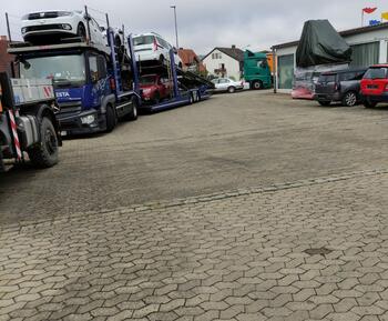 Dem Autotransporter ist ein Hydraulikschlauch geplatzt. Der Disponent der Firma hat dem Fahrer unsere Adresse gegeben und dieser hat sich sofort auf den Weg gemacht. Der Hydraulikschlauch wurde von unserem Mechaniker ausgebaut und durch einen neuen e