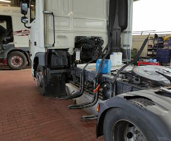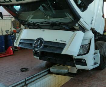 Hydraulikreparatur des litauischen Autotransporters MB Atego 1843.