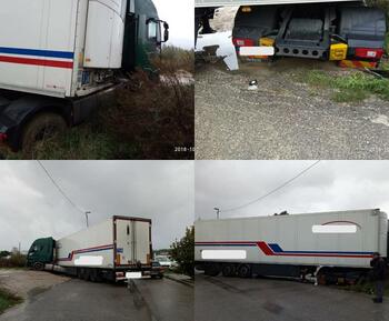 Der Auflieger wurde von einem Kran in einen anderen Auflieger aufgeladen um ihn abzutransportieren