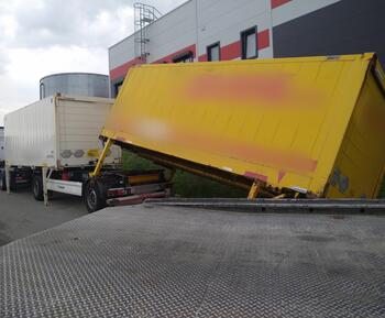 Heute früh um 7 Uhr erreichte uns eine dringende Anfrage aus 72525 Münsingen: Ein Container war beim Abladen umgekippt. Die rechte Stütze des Fahrzeugs war beim Absetzvorgang nicht ausgefahren, wodurch der Container das Gleichgewicht verlor und seitl