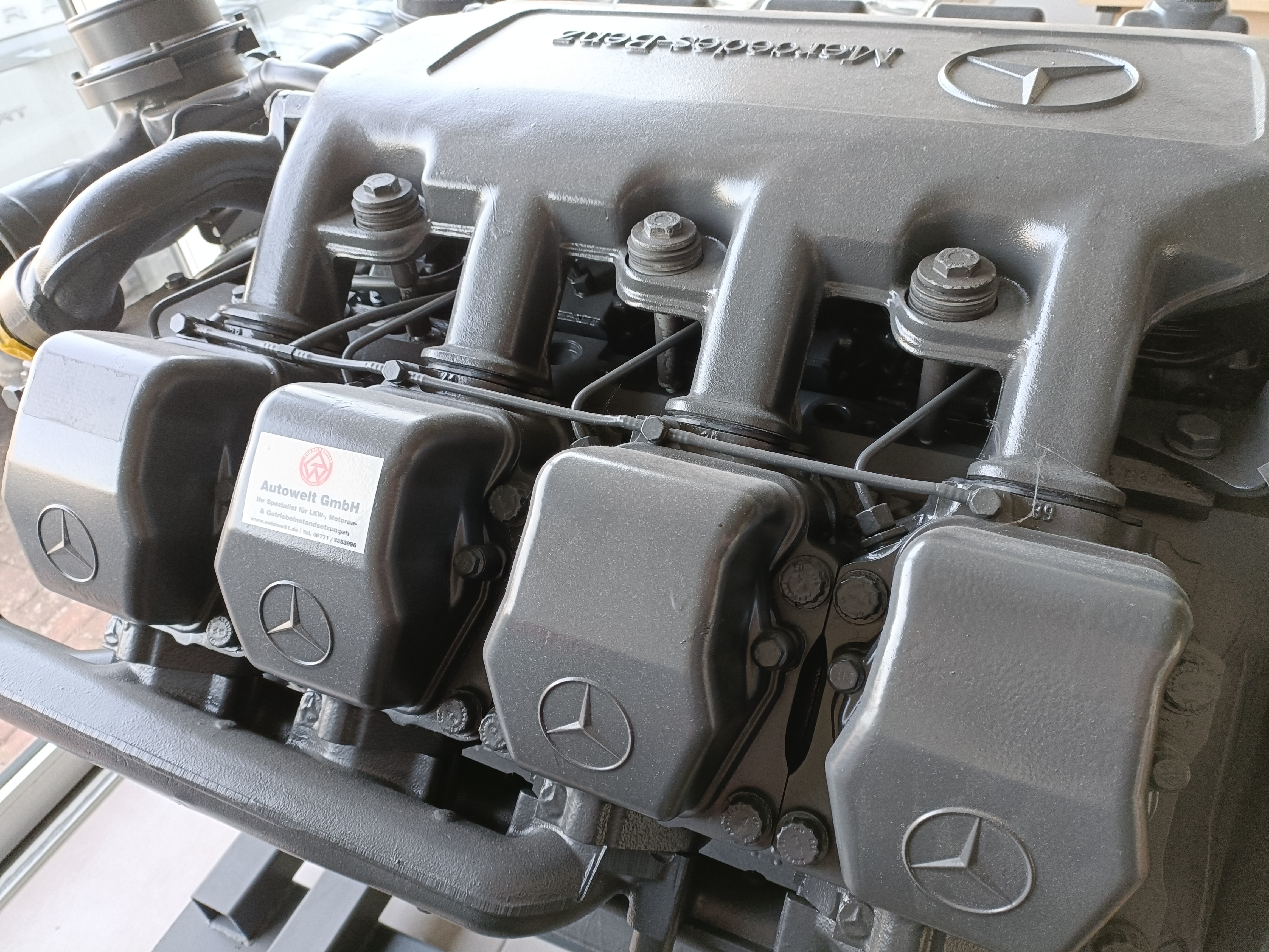 Der defekte Motor eines CLAAS JAGUAR Feldhäckslers wurde zur Reparatur von Thüringen, aus der Nähe von Erfurt, zur Werkstatt der Autowelt GmbH in Niederlauer gebracht. Die Mechaniker setzten sich daran den OM502LA zu säubern, auseinanderzunehmen und zu identifizieren, welche Einzelteile ersetzt werden müssen. Die Kurbelwelle musste mitsamt Kolben und Laufbuchsen ausgetauscht werden, die beiden Turbos des V8 sollten ersetzt werden, die Einspritzdüsen waren defekt und das war nur der Anfang.