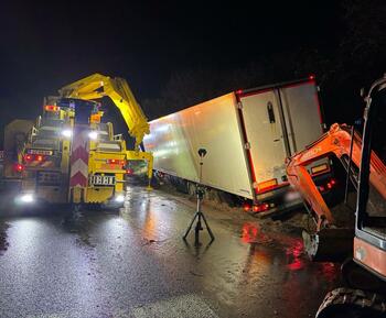 An accident occurred on the A6 motorway near 90454 Nuremberg, during which a loaded Volvo truck ended up in a ditch. The driver immediately contacted AWhelp24 and asked for assistance in order to recover the vehicle.Fortunately, nobody was injured in