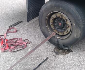 A customer was travelling on the streets near Vienna, when one the the tyres on his trailer burst. The driver came to stop and tried to take off the steel rim in order to remove the remains of the tyre. However, as the rim was rusted to the wheel hub