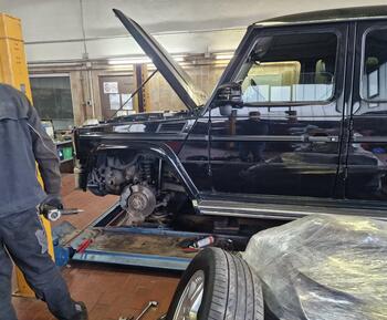 A Mercedes Benz G350 had to have some wear parts replaced. We took it to our workshop at the Autowelt GmbH in 97618 Niederlauer, right next to Bad Neustand a. d. Saale, and took care of the repairs. We replaced the worn brake discs, brake pads and sp