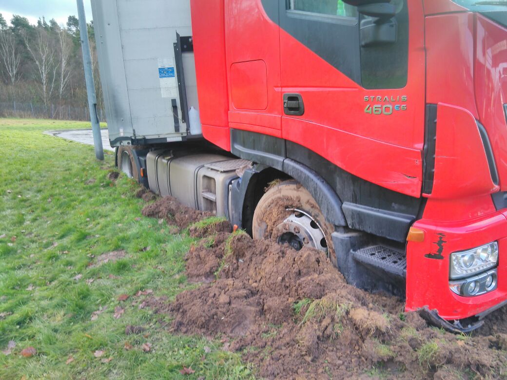An Iveco Stralis 460 got stuck in the dirt on the side of a parking lot near Frankfurt, Germany. After a couple of failed attempts to get the truck back on the road, the driver realized, that help was needed. Since the man was from Poland and could speak neither German nor English very well, he decided to call Awhelp24´s truck breakdown service at +49 9771 90 64 5 64. With our strong network of business partners in the area, the tow truck arrived within half an hour, pulled the Iveco on the asphalt and soon the driver was back on his way. Since the problem was resolved quickly, the haulier was able to save a lot of time and money.