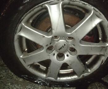 Volkswagen Golf Ukrainos vairuotojui, važiuojant A4 greitkelyje ties Jena (Vokietijoje), staiga sprogo padanga. At