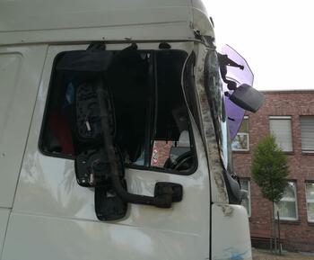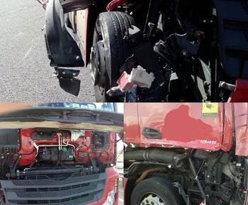 DAF wjechal w drzewo i rozbil przednia szybe oraz jest wgnieciony z jednej strony