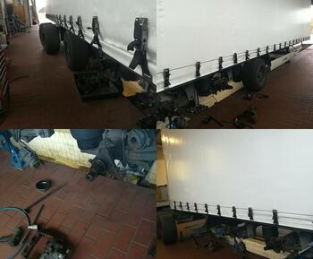 Transporter zostal najechany, w efekcie czego gorne pietro naczepy oderwalo sie od mocowan.