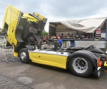 Jeden z naszych klientów miał problem ze zbiornikiem paliwa w ciężarówce MAN TGX w Würzburgu, więc odholowaliśmy ją do naszego warsztatu w Niederlauer 97618. Sprawdziliśmy zbiornik. Najpierw został on opróżniony, wyjęty i wyczyszczony wewnątrz i na z