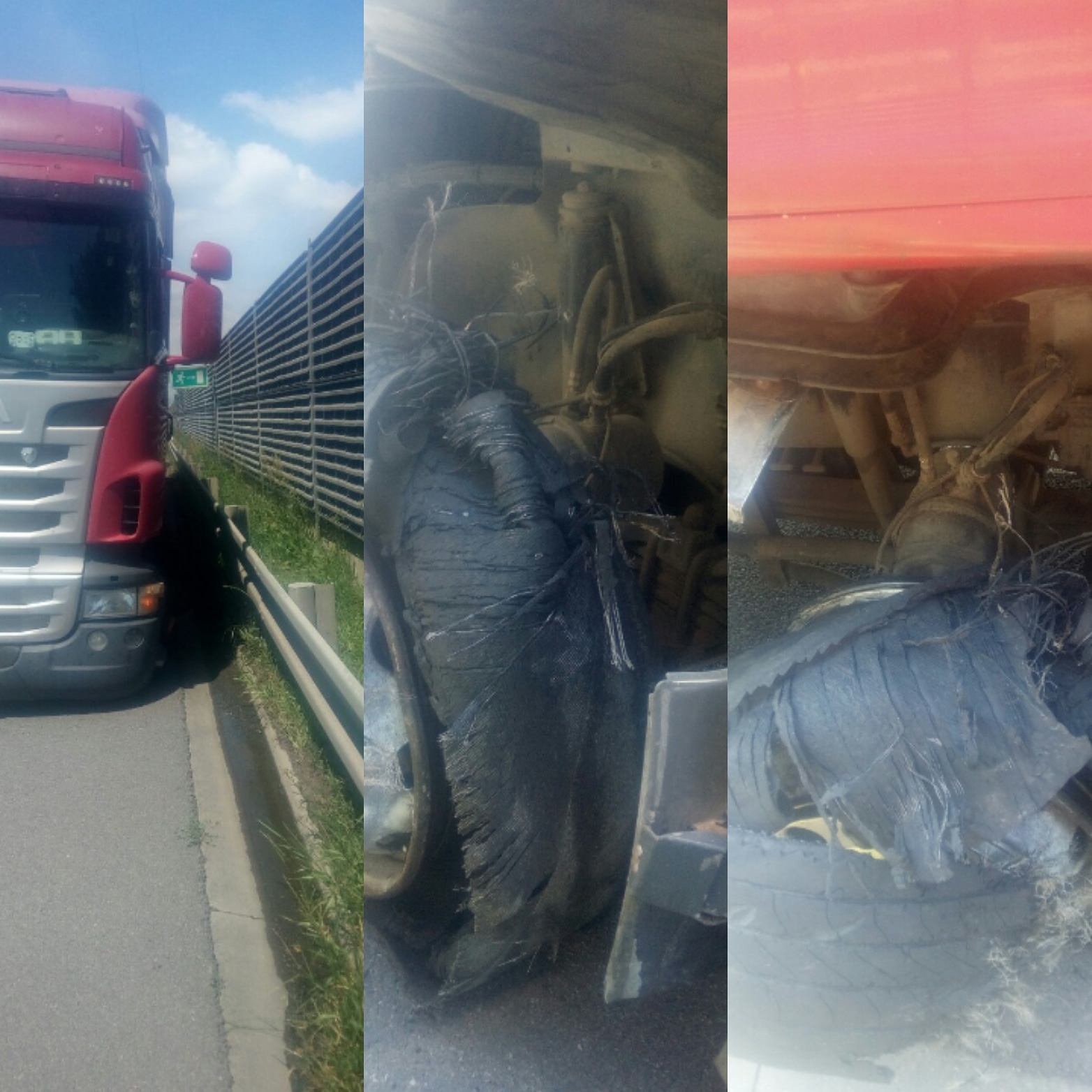 W tym pojezdzie kierowca jechal bez powietrza i uszkodzil felge.