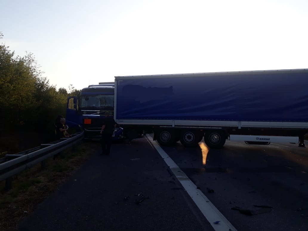 Operator drogowej służby technicznej AWHelp24 otrzymał telefon od dyspozytora białoruskiej firmy. Dwa zestawy szły po trasie jeden po drugim. W rejonie Hanoweru kierowca ciężarówki z przodu został zmuszony do awaryjnego hamowania. Aby uniknąć zderzenia z innymi samochodami i obejść się bez ofiar musiał zawrócić ciężarówkę. Niestety jego samochód został uderzony przez odbojnik. Ucierpiał także drugi ciągnik siodłowy. Zwrócono się do nas z prośbą o podjęciu ciągników na naczepy. AWHelp24 zorganizował dźwig i pracowników, a także przeładunek towarów z naczep. Klient zabrał ciągniki na naczepach do domu.