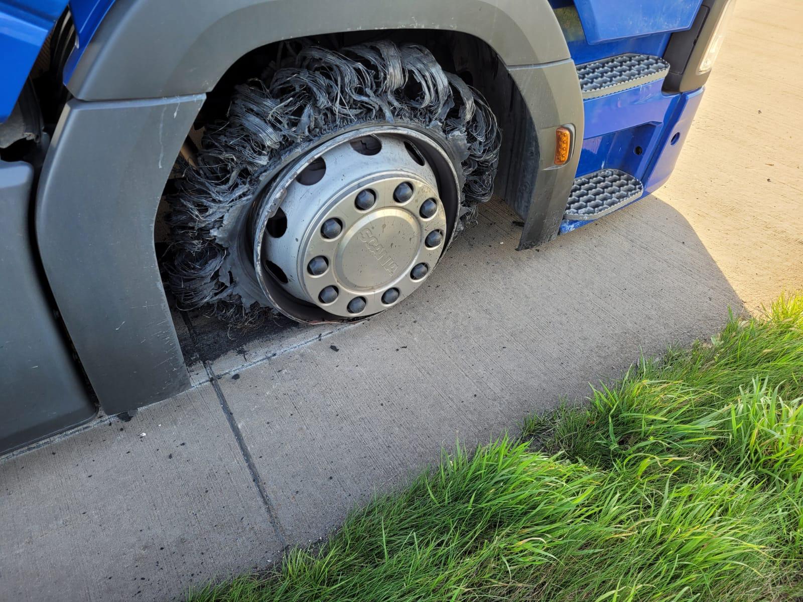 - Поломка: лопнувшее колесо на Mercedes-Benz Actros.